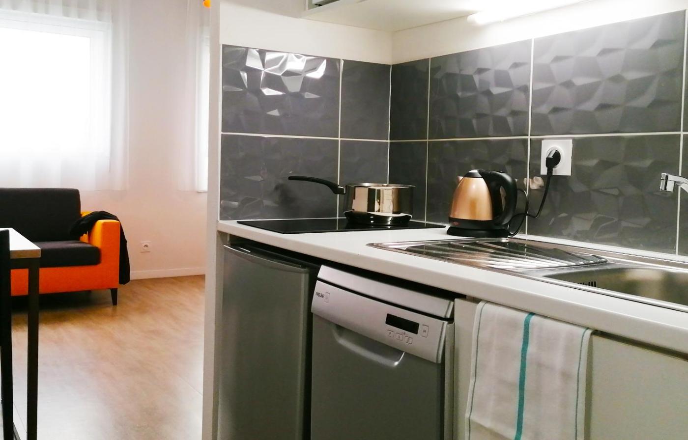 Comfort Studio. Providing free toiletries, this studio includes a private bathroom with a shower and a hairdryer. Meals can be prepared in the well-fitted kitchenette, which is equipped with a stovetop, a refrigerator, a dishwasher and kitchenware. The studio provides soundproof walls, a tea and coffee maker, a seating area, a flat-screen TV with satellite channels, as well as city views. The unit offers 2 beds. ;